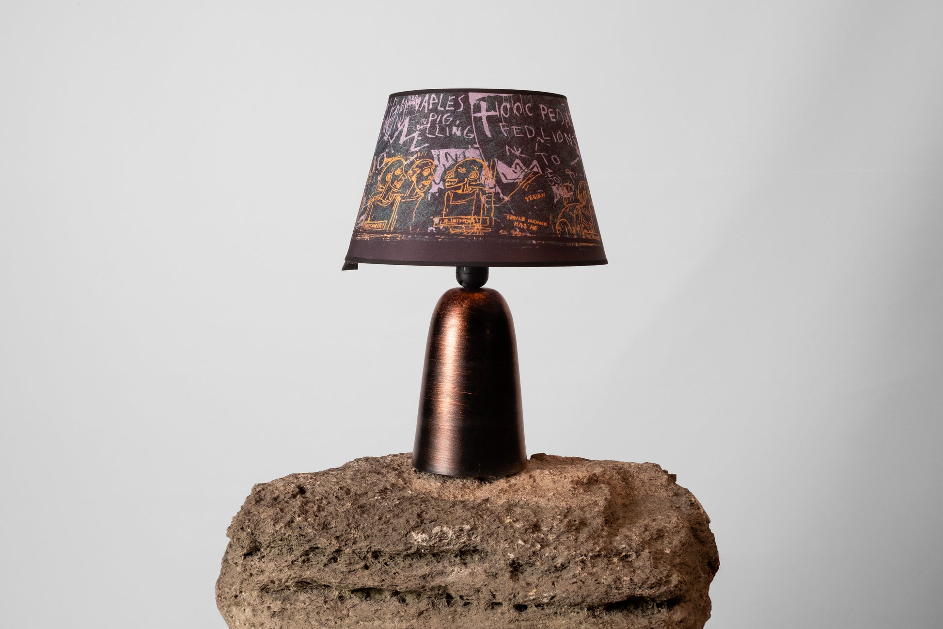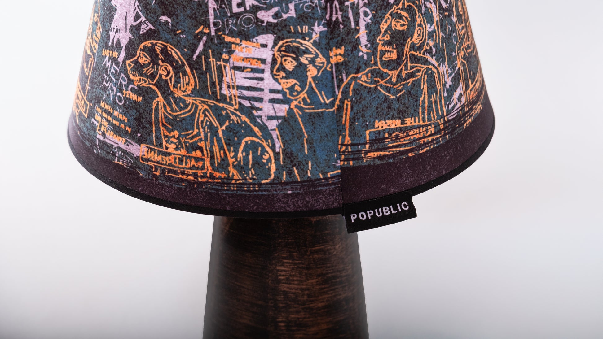 Samo, özel kumaş başlık üzerine dijital grafik baskı teknikleriyle üretilmiş, POPUBLIC desenleriyle tasarımın tüm ruhunu üzerinde taşırken; her detayına özel olarak işlenen görsel anlatım, abajura POPUBLIC’in sokak estetiğiyle bütünleşen özgün bir ifade dili kazandırıyor.
